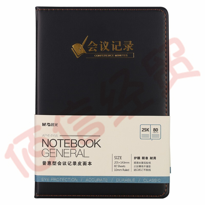 ■晨光(M&G)文具A5/25K 80张黑色会议记录皮面本 办公笔记本 普惠型商务记事本子 单本装APYE4Y55 自营