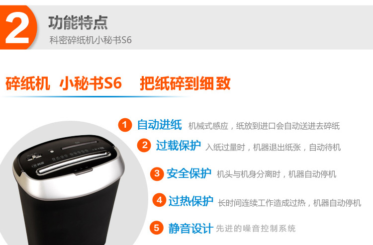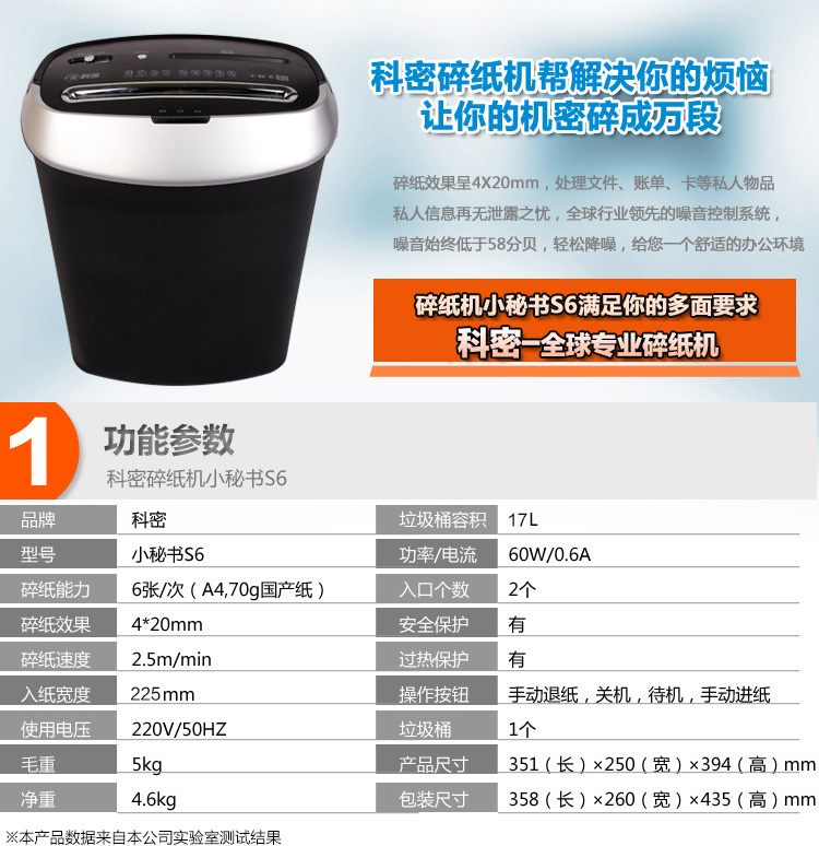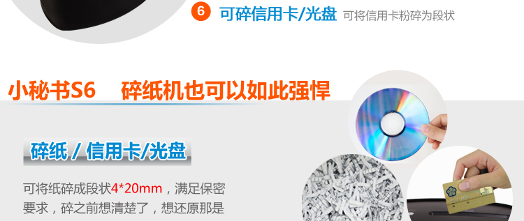 科密S6碎纸机 小型多功能便携式桌面小秘书单位办公家用文件粉碎机段状 6张5分钟17升碎纸光盘卡 科密S6标配 自营