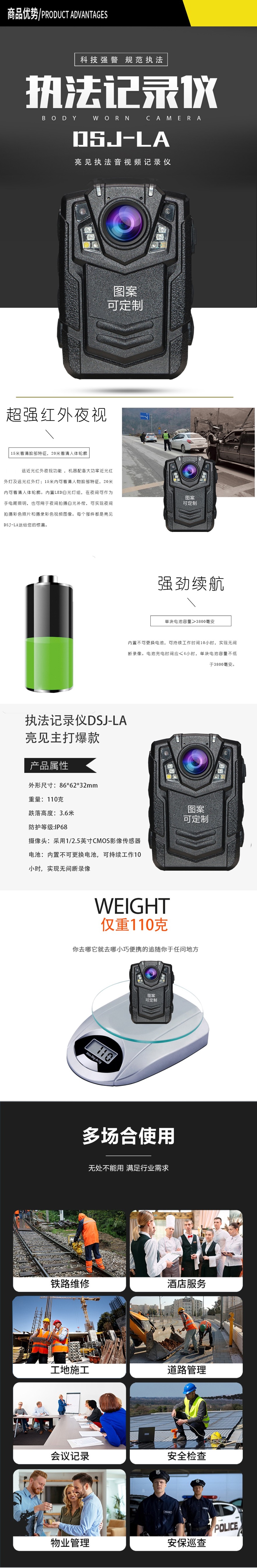 亮见 DSJ-LA 执法记录仪 1296P_高清红外夜视_现场执法仪_120度广角摄像头_128GB 自营