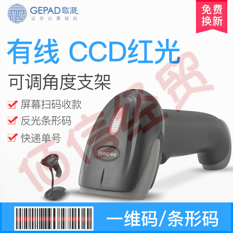 歌派(GEPAD)无线扫描枪 有线一二维扫码枪 商超便利店微信收银开票扫码器 农资医药仓储物流条码枪 YZ-138 有线一维(带支架) 自营