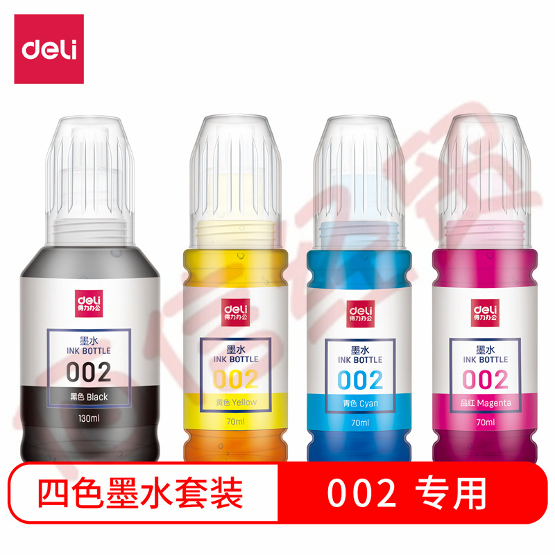 ■得力(deli)DBH-002A 适用爱普生002墨水T03X1 L4158 L4168 6168 L6178 L6198 T03X4-002喷墨打印机墨水套装 自营