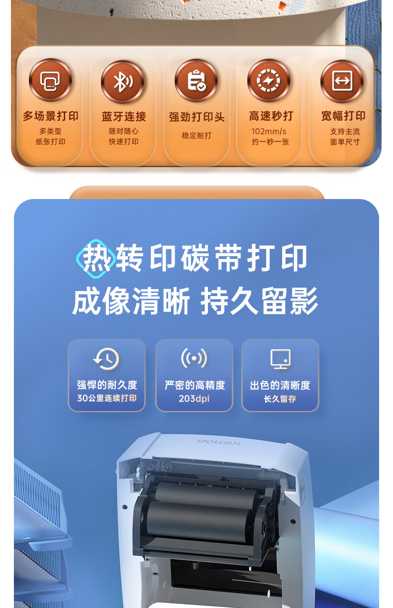 ■得力(deli)108MM热转印标签打印机 手机蓝牙快递面单不干胶服装零售仓储物流DL-888TW 自营