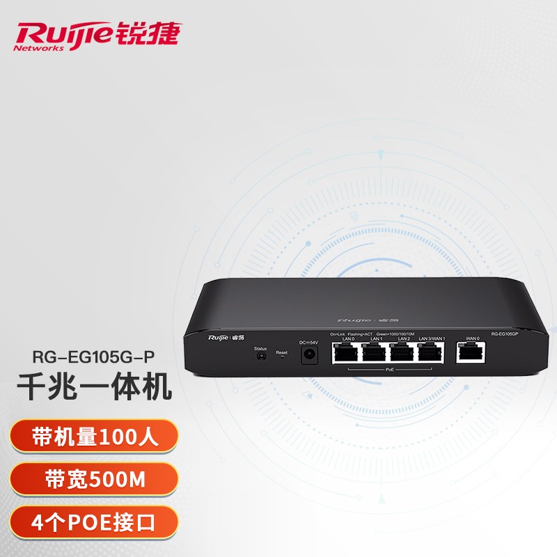 锐捷(Ruijie)_RG-EG105GW 千兆路由器_企业级网关路由_双WAN口_无线AC控制器_RG-EG105G-P_5口千兆POE_带机80 自营