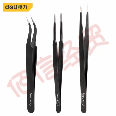 ■得力(deli) DL396003不锈钢镊子3件套 弯头镊子+平头镊子+尖头镊子应急常备 自营