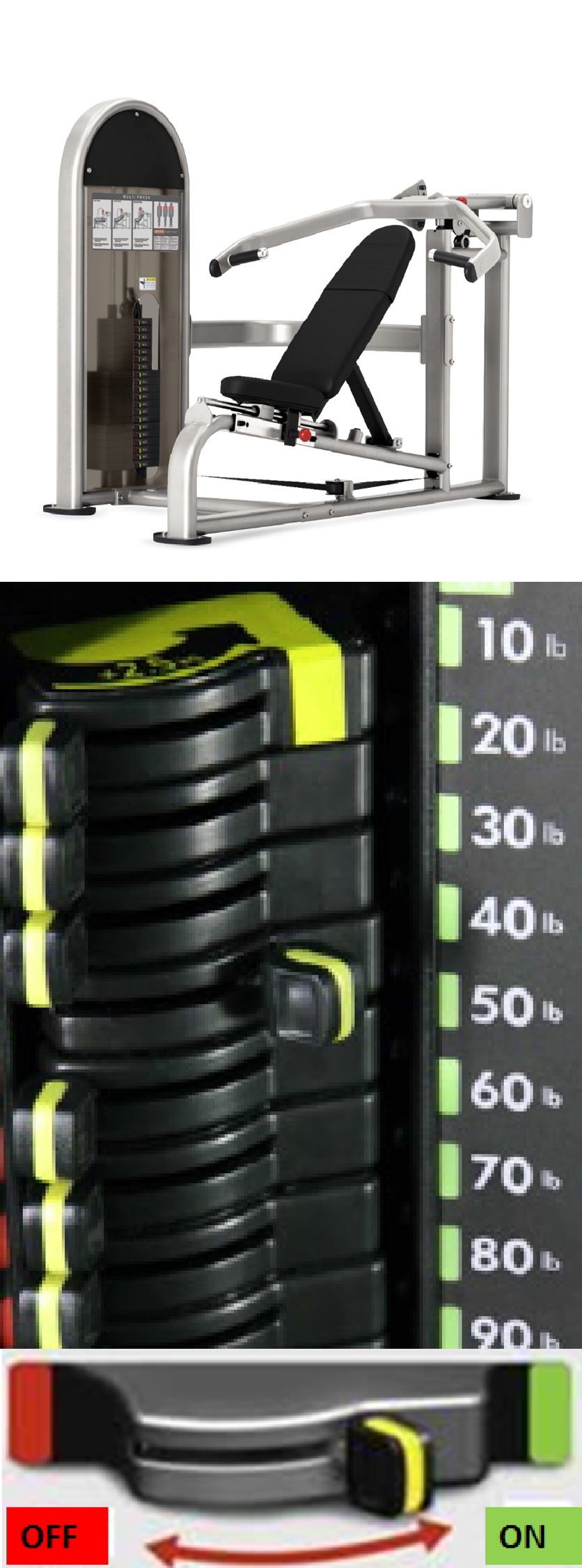 ●全球领先的“Lock N Load”专利拨片式调节系统,调节重量无需拔上拔下,只需轻轻一拨即可。