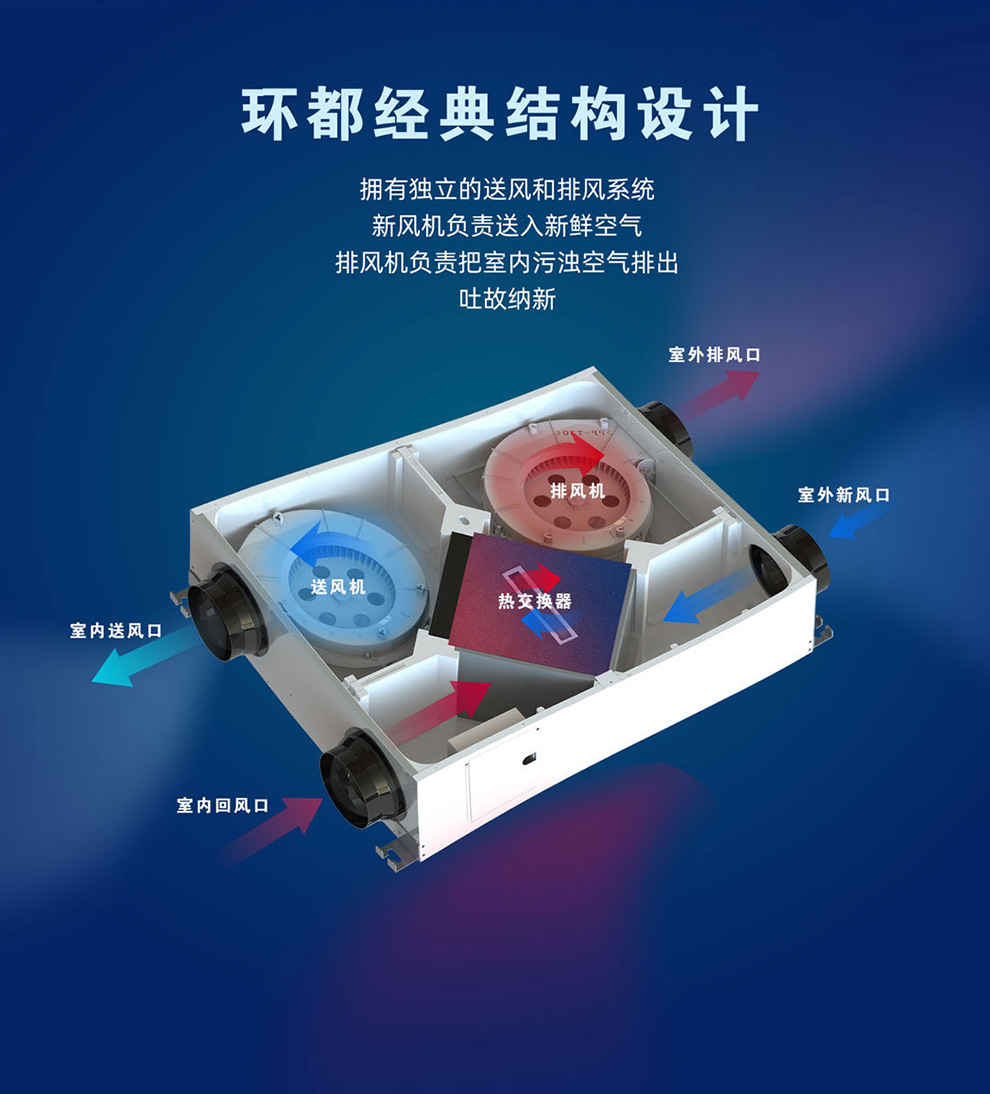 环都(HOLTOP)新风系统中央吊顶式新风机家用管道全热交换双向通风换气过滤PM2.5_雅居系列吊顶_ERVQ-D150-2A 自营