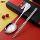 HDST 公筷公勺 不锈钢公用勺筷套装分菜分餐勺公勺公筷家用套装酒店餐厅 两件组 KS-20106 自营