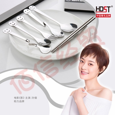 HDST 不锈钢笑脸餐具套装叉勺筷创意礼品送女生闺蜜男女朋友生日礼物定制活动送客户纪念品 黑白smile礼盒-4件组 DT-1649 自营