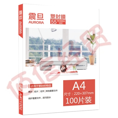 震旦AURORA A4-55MIC透明高清专用护卡膜/塑封膜220x307mm(100张/包) 自营