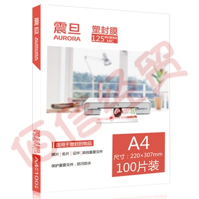 震旦AURORA A4-125MIC透明高清专用护卡膜/塑封膜220x307mm(100张/包) 自营