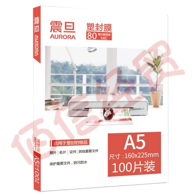 震旦AURORA A5-80MIC照片8寸透明高清专用护卡膜/塑封膜160*225mm(100张/包) 自营