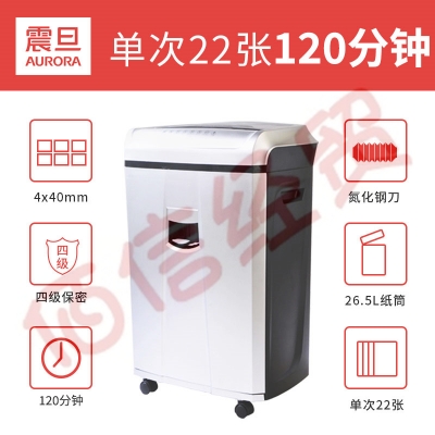 震旦AURORA 4级保密办公商用碎纸机(单次22张 持续120分钟 26.5L 可碎卡、光盘) AS2260CD 自营