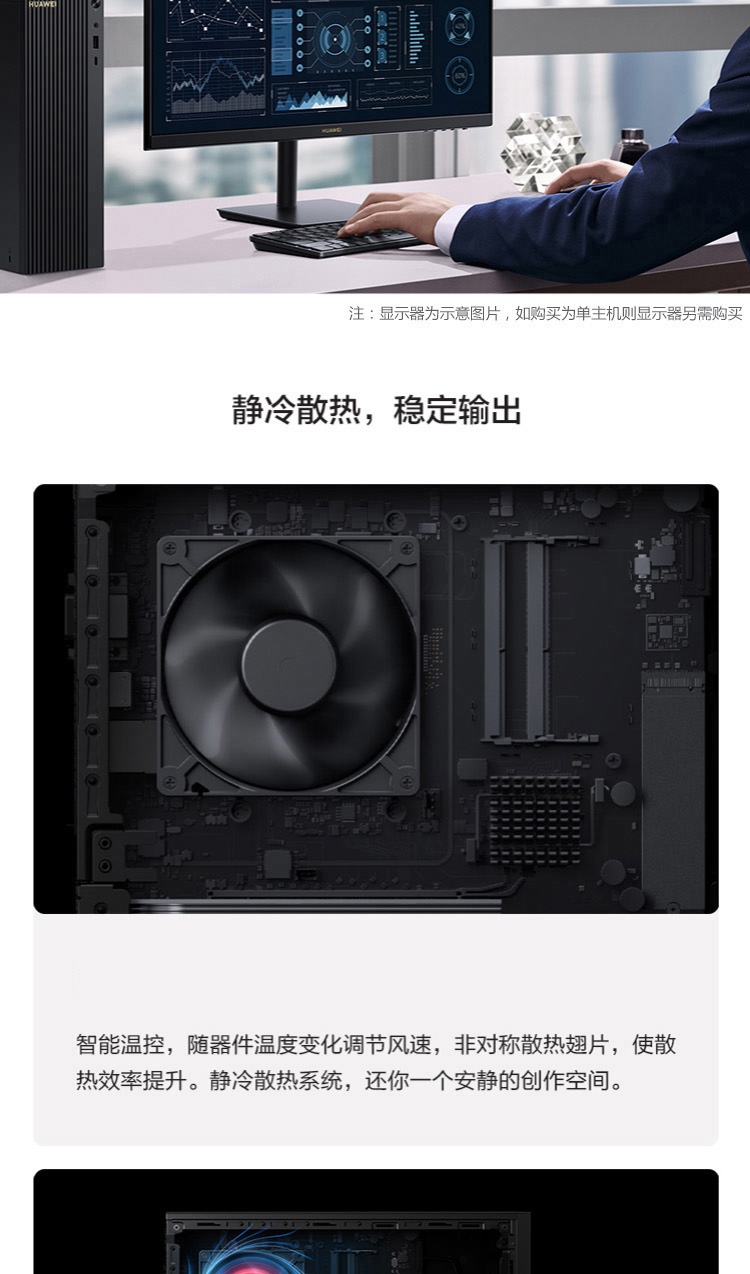 华为HUAWEI_ MateStation_B515_PUL-WDH9A商用台式电脑_(R5-4600G_8G_1TB_集显)+AD80HW显示器 自营