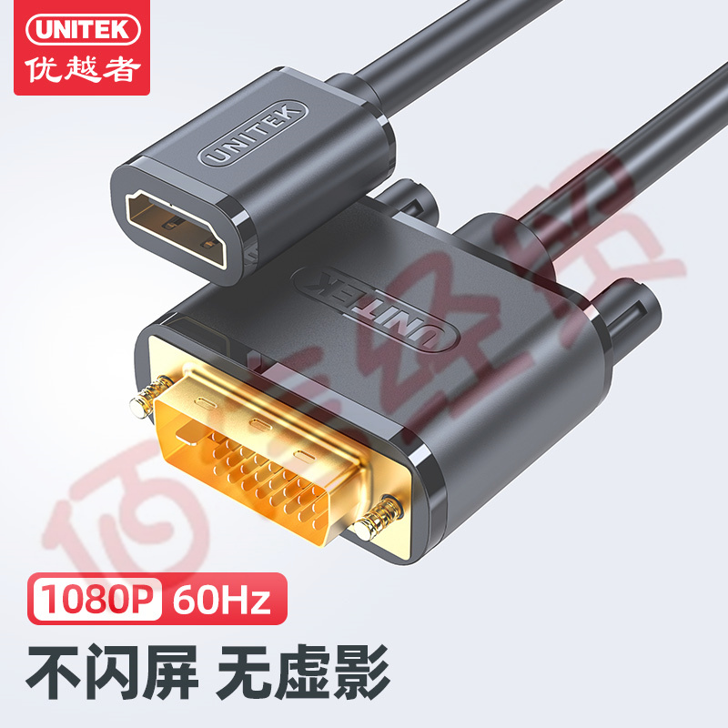 优越者(UNITEK)DVI转HDMI母转接线0.25米 HDMI转DVI高清线 公转母双向转换电脑笔记本电视转换器Y-C249BK 自营