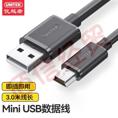 优越者(UNITEK)行车记录仪线 USB2.0转Mini USB数据线 T型口电源线 相机平板连接线 3米 C433EBK 自营