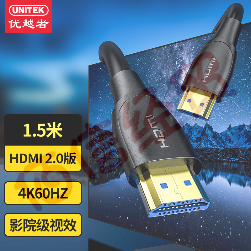 优越者 (UNITEK)HDMI线2.0版 电视盒子机顶盒显示器视频线 4K/3D数字电脑连接线 1.5米 C1038BK 自营