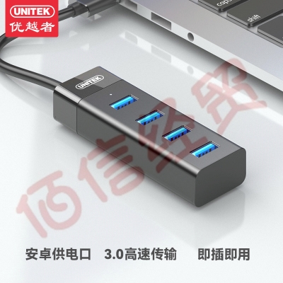 优越者(UNITEK)USB分线器3.0高速4口扩展坞笔记本台式电脑一拖四hub集线器usb延长线0.3米带供电口 Y-3098ABK 自营