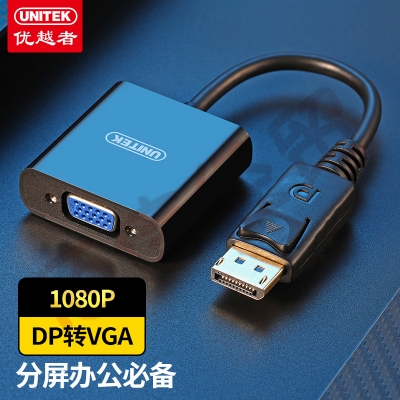 优越者(UNITEK)DP转VGA转换器 Displayport高清转接器 电脑显示器投影仪视频线连接线 黑色Y-6339BK 自营