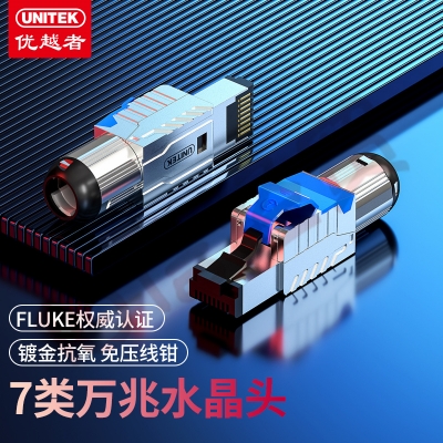 优越者(UNITEK)七类水晶头工程级CAT.7万兆免压网线接头 10Gbps高速传输RJ45电脑网络连接器 OT48ANI 2个装 自营