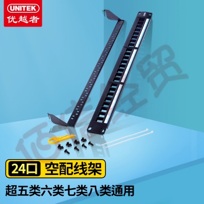 优越者(UNITEK)配线架空架 超五类六类七类网络模块 24口屏蔽网线电话配线架 模块免打插座空配线架T019A 自营