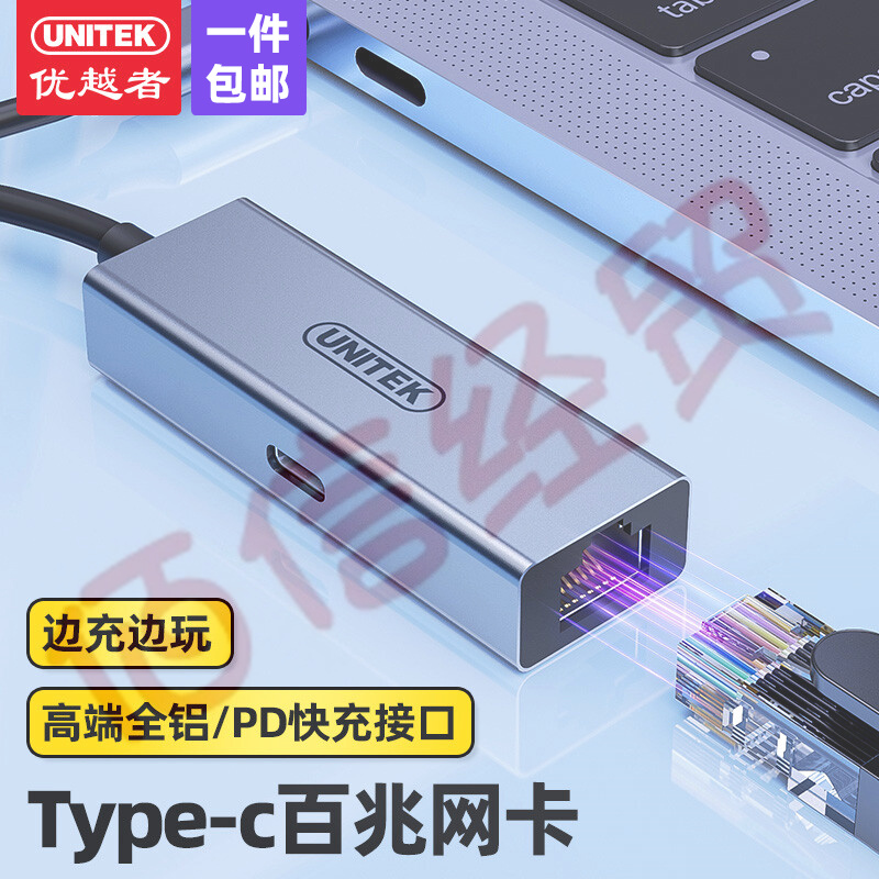 优越者(UNITEK)Type-C扩展坞 百兆网卡网口转换器苹果Mac华为小米笔记本电脑PD供电款rj45网线分线器 U322A 自营