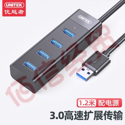 优越者(UNITEK)USB分线器带电源 高速hub集线器3.0 笔记本电脑一拖四usb扩展器多接口1.2米延长线 Y-3098CBK 自营