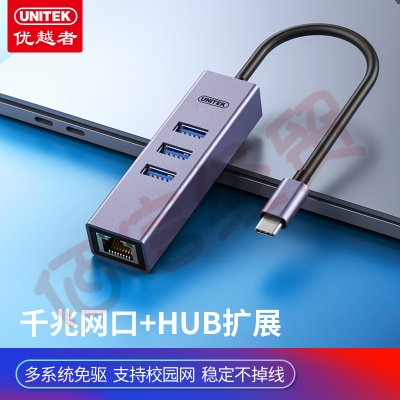 优越者type-c扩展坞 usb分线器3.0转千兆网口 苹果华为小米联想笔记本电脑usb扩展网线转换器 Y-3083W 自营
