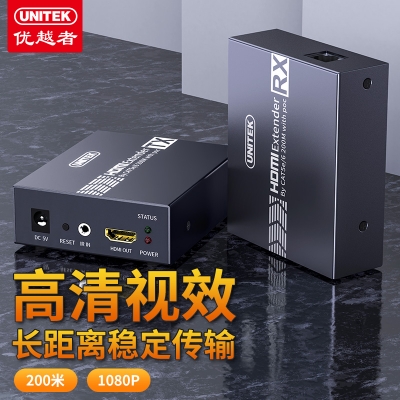优越者(UNITEK) HDMI延长器200米 hdmi转RJ45转换器 单网线网络传输信号放大器200米发射器+接收器V150A 自营