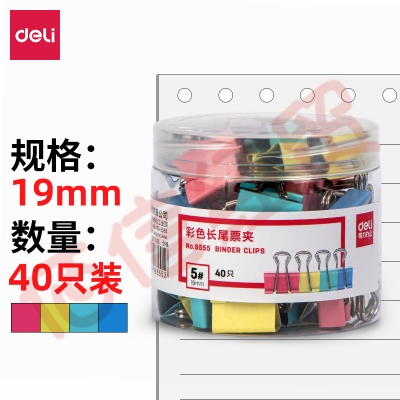 得力(deli)40只19mm彩色长尾夹票夹 5#金属燕尾夹票据夹子文件夹 办公用品 8555 自营