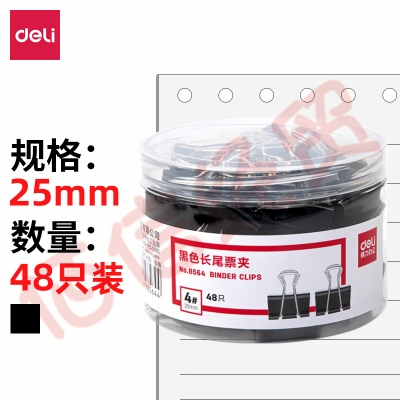得力(deli)48只25mm黑色长尾夹票夹 金属燕尾夹票据夹子 办公用品 中号8564 自营