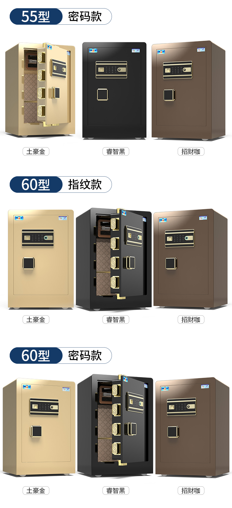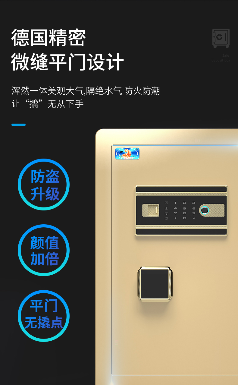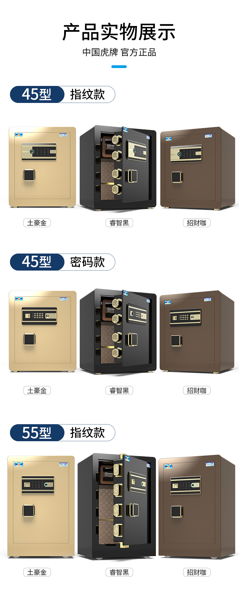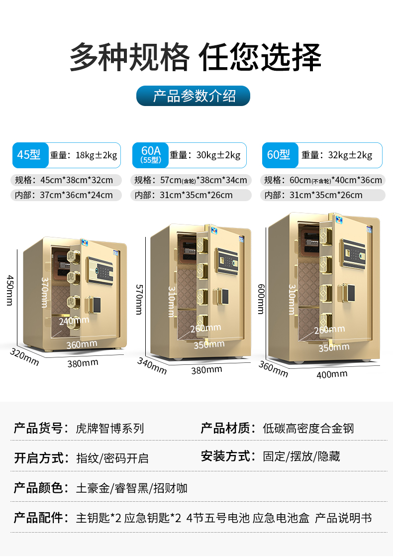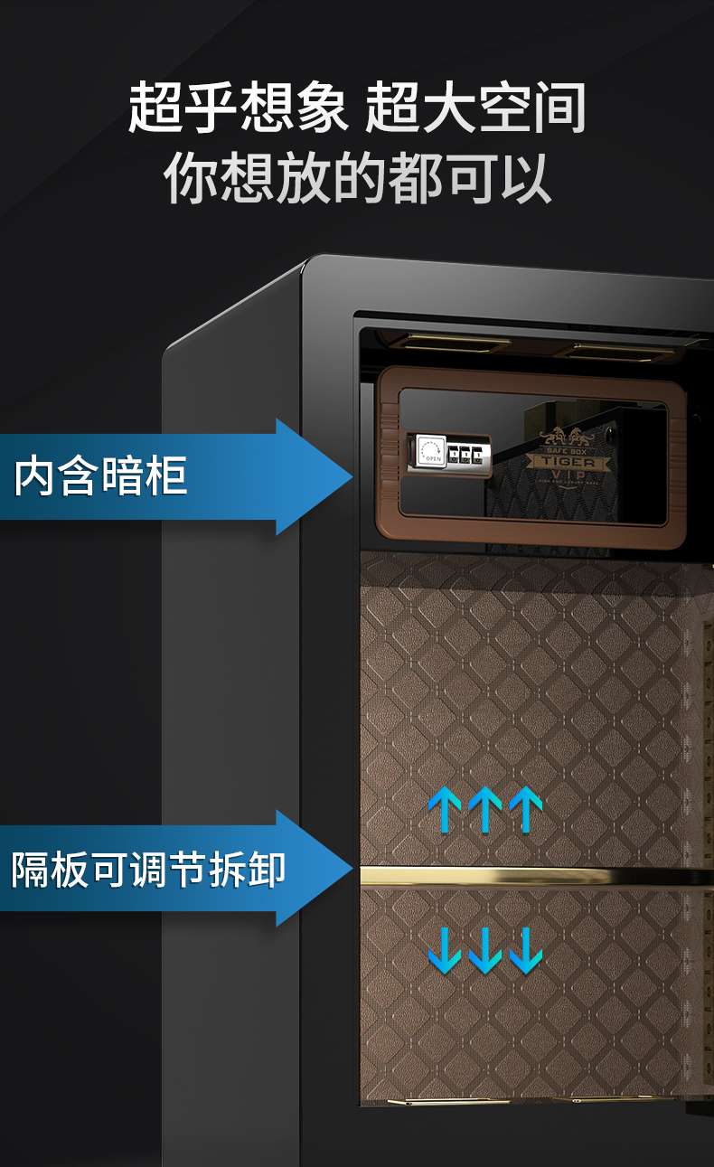 虎牌60指纹密码保险柜小型指纹密码保管柜CSP全钢防盗入墙保险箱 睿智 60cm 自营