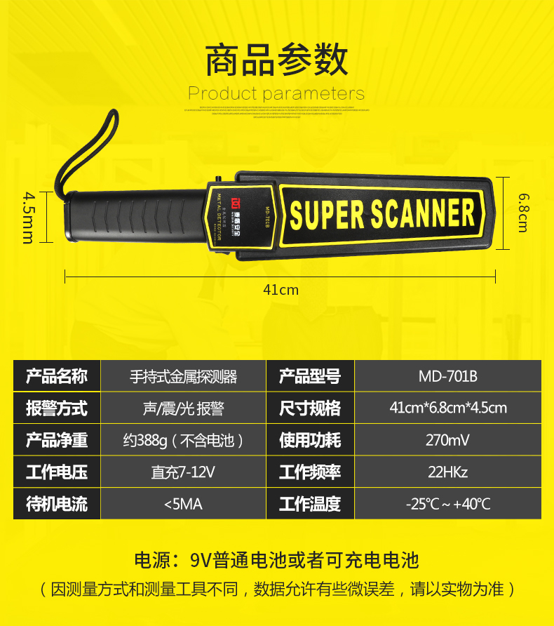 麦盾MD-701B手持金属探测器充电款 安检仪高灵敏金属检测仪 车站安检仪 考场探测器 木材探钉