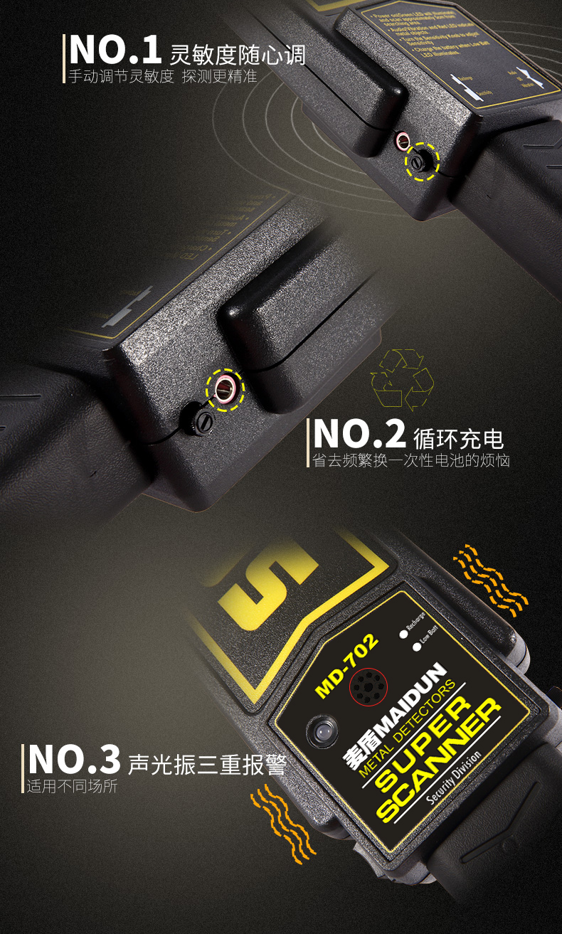 麦盾MD-702 手持金属探测器 金属检测仪 安检仪 手持安检仪 手持安检机 自营