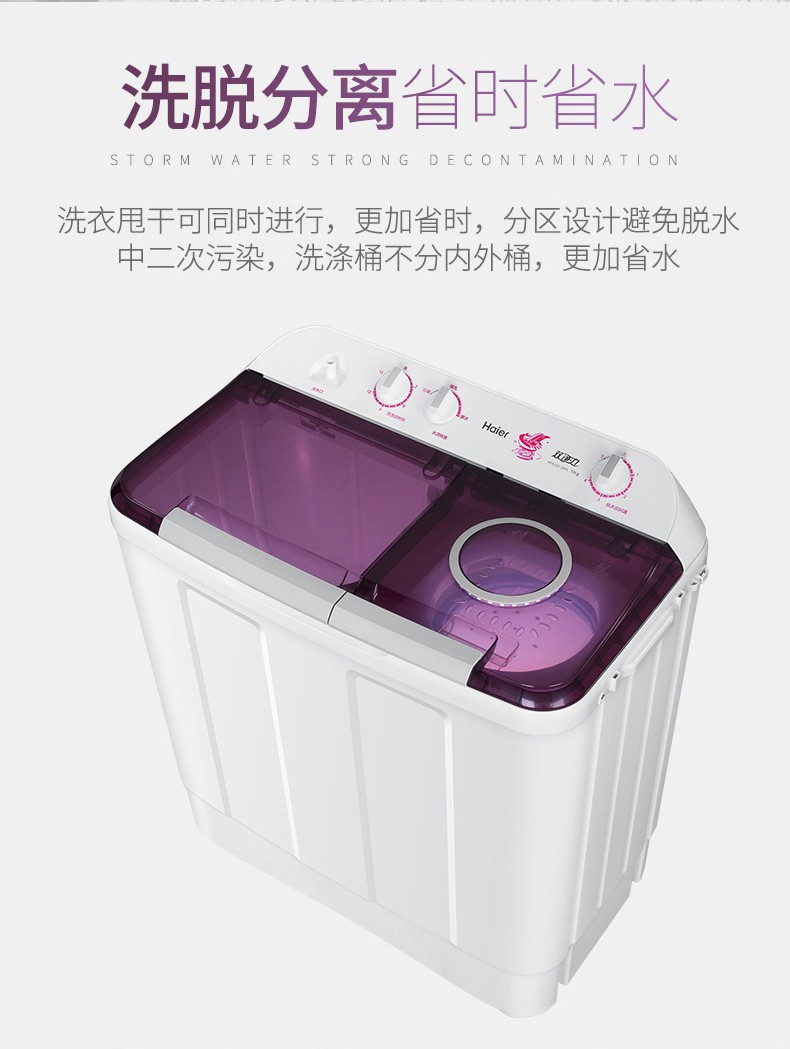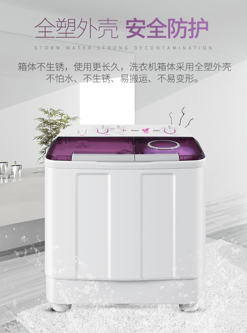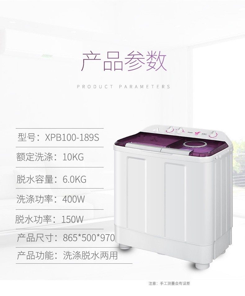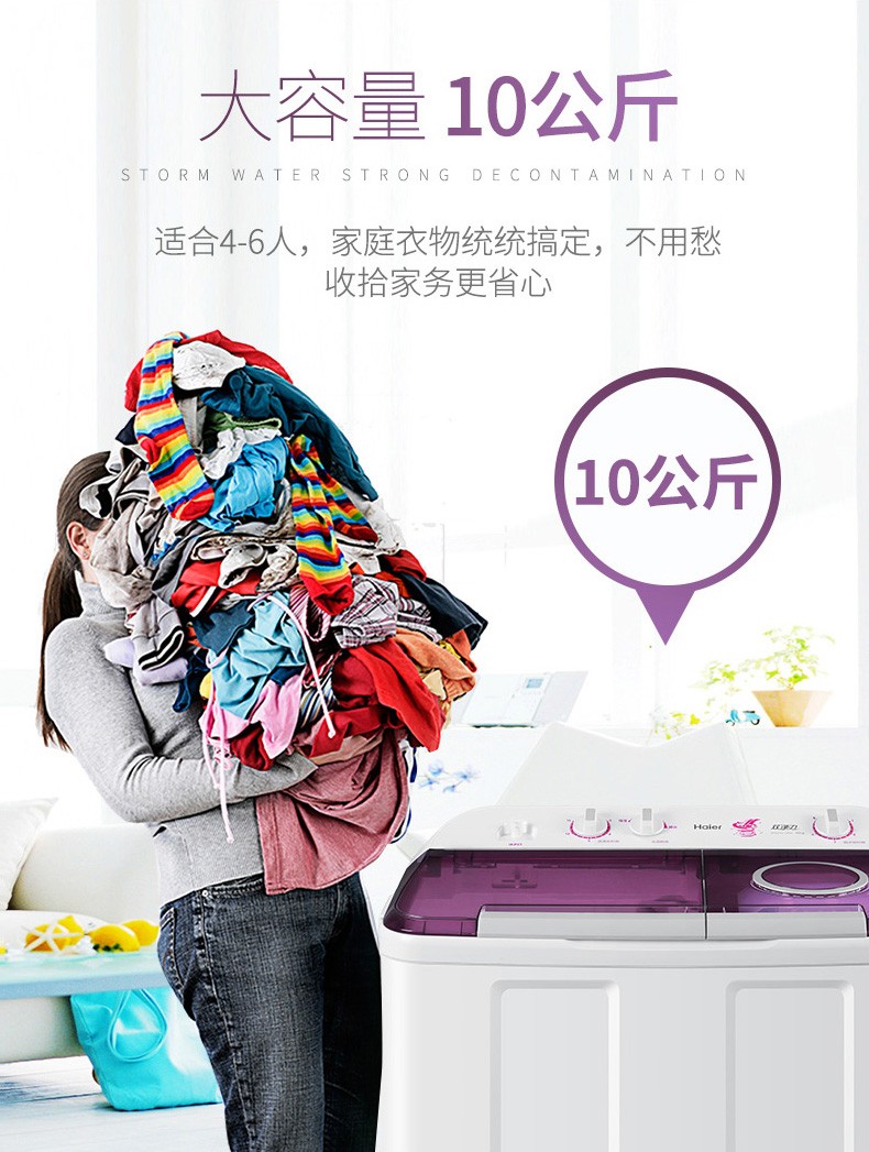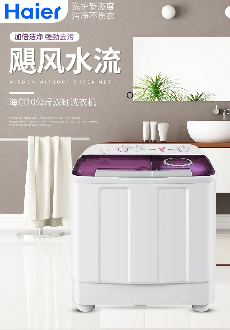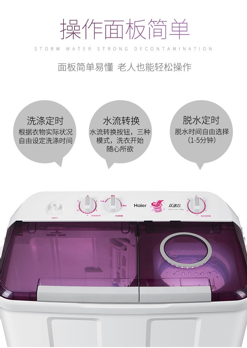 海尔(Haier)XPB100-189S 洗衣机半自动洗衣机大容量强劲动力 双缸双筒双电机简单操作 10公斤 白色