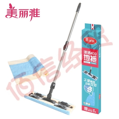 美丽雅潇洒400平板拖把铝合金板子蝴蝶夹布地拖家用木地板地砖懒人墩布加长杆 超市彩盒款 自营