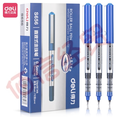 得力(deli)直液笔中性笔 0.5mm子弹头签字笔学生考试笔走珠笔水笔 蓝色 办公用品12支/盒S656 自营