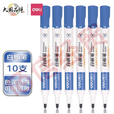得力(deli)白板笔 色泽明亮可擦易擦 蓝色10支/盒6817 办公用品(新老款随机发货) 自营