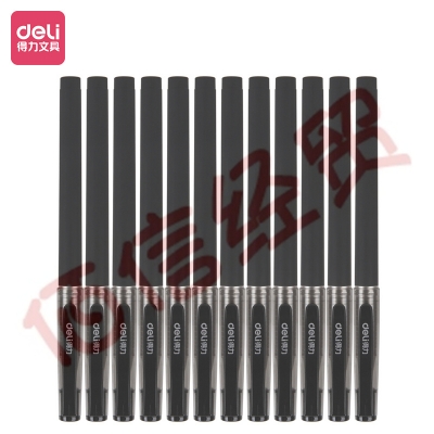 得力(deli)0.5mm黑色中性笔金属喷漆笔 子弹头签字笔 12支/盒 自营