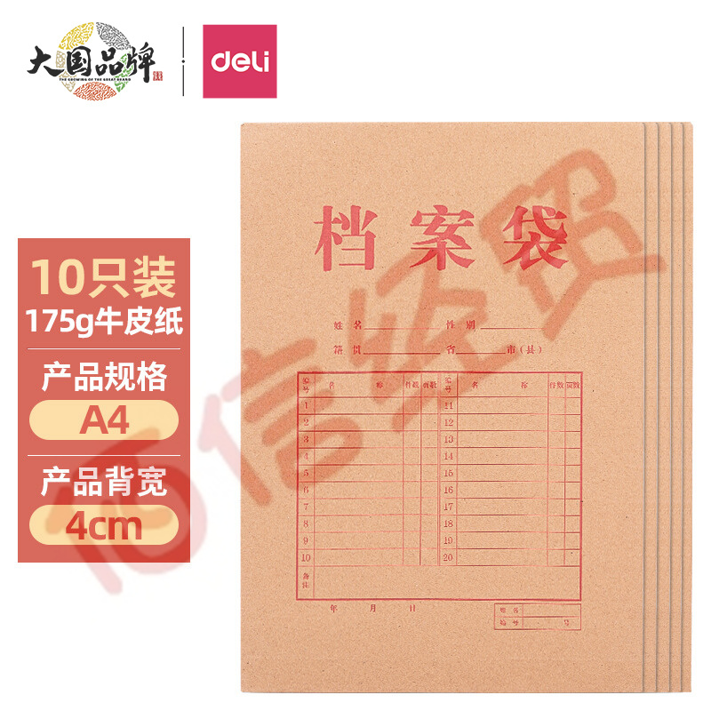 得力(deli)-10只-A4-混浆-175g牛皮纸档案袋 侧宽4cm文件资料袋 文件保护票据收纳 5953 自营