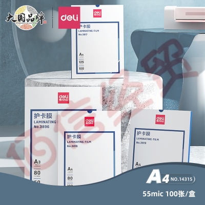 得力(deli)-塑封膜-305*220mm- A4 55mic厚度100张/包-14315 自营