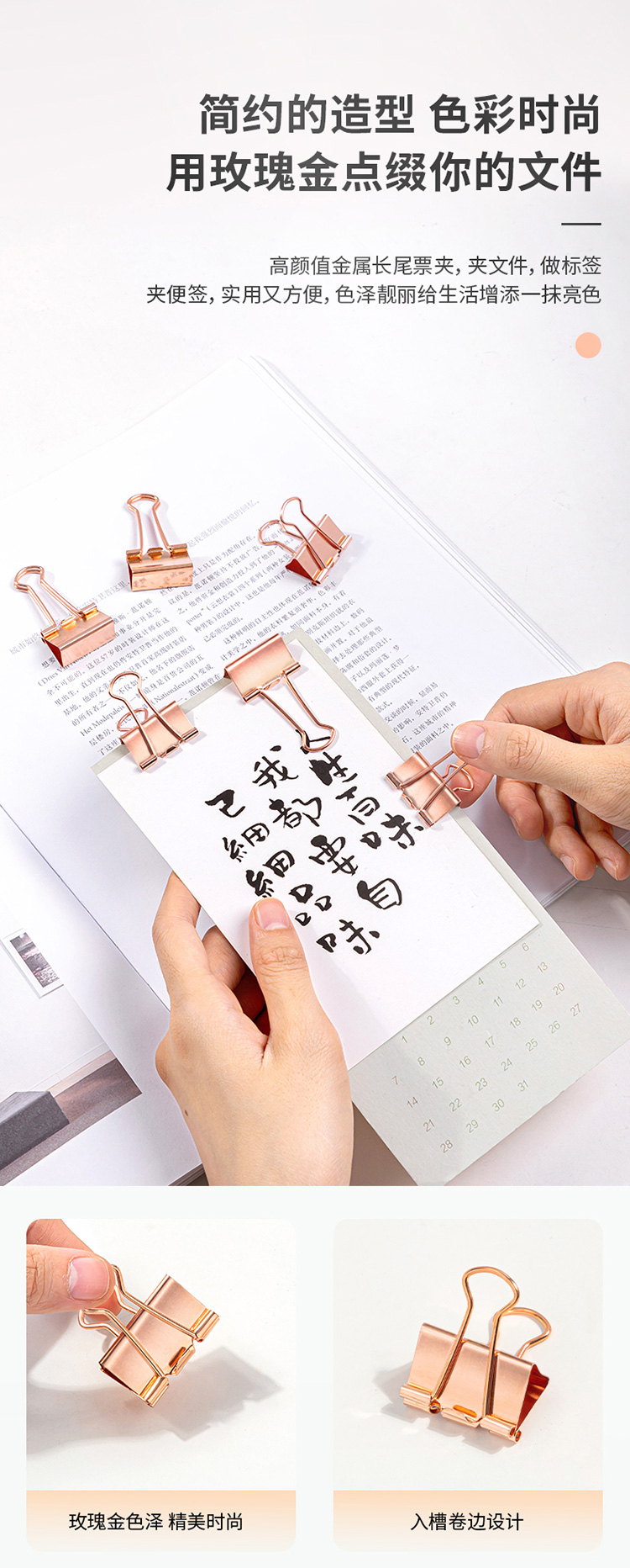 得力(deli)-25只 -4#玫瑰金长尾夹-25mm--78203 (每包4盒) 自营