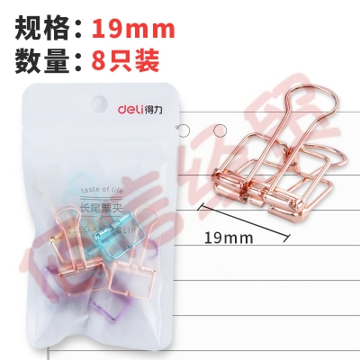 得力(deli)-小号8只装-彩色镂空长尾夹-78206 (每包48袋) 自营