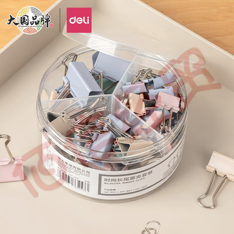 得力(deli)-63只-莫兰迪色多规格长尾夹-(32mm10只+25mm18只+19mm35只)-8529A 自营