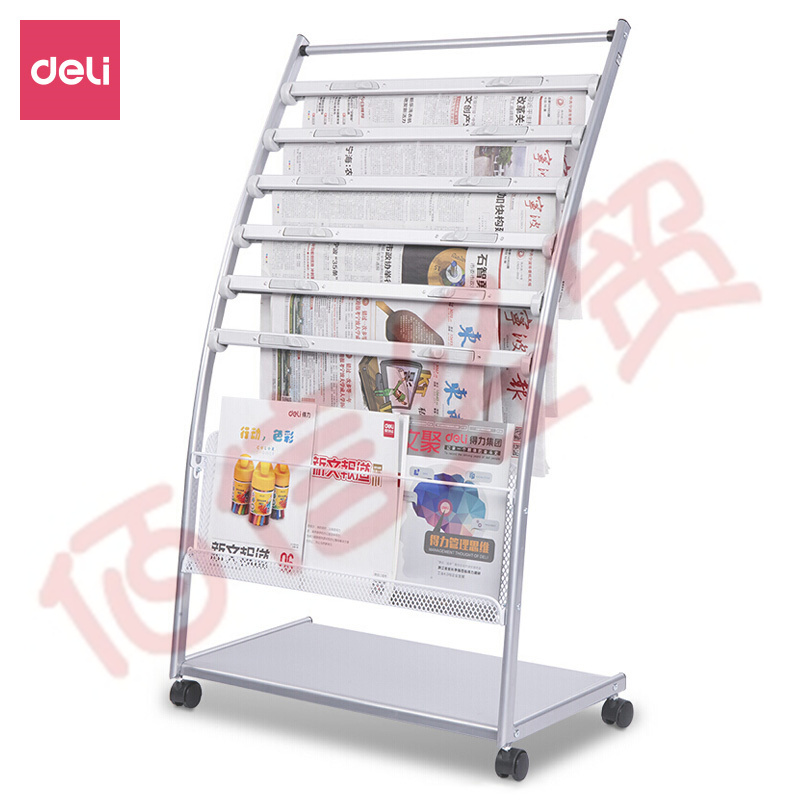 得力(deli)9303 七层铝合金夹条报纸架报刊架报夹条 宣传杂志展示架 图书馆置物架 高1.08米