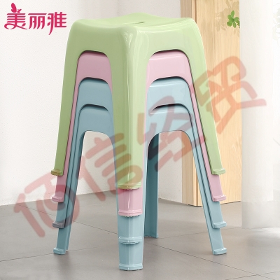美丽雅 塑料高凳子加厚 客厅餐桌家用方形板凳 现代简约梳妆台化妆便携式胶凳 1只(5个起售) 自营