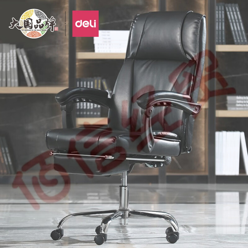 得力 deli 生态皮老板椅 带脚托大角度可躺办公椅 人体工学电脑椅 87088 黑色