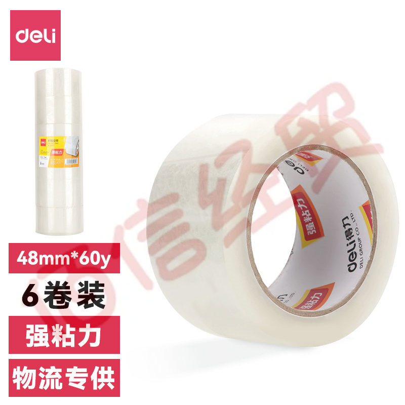 得力(deli) 普透明封箱胶带 快递物流打包胶布 48mm*60y*45um(6卷/筒) 30212 自营
