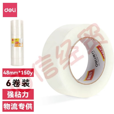 得力(deli) 普透明封箱胶带 快递物流打包胶布 48mm*150y*45um(6卷/筒) 30214 自营