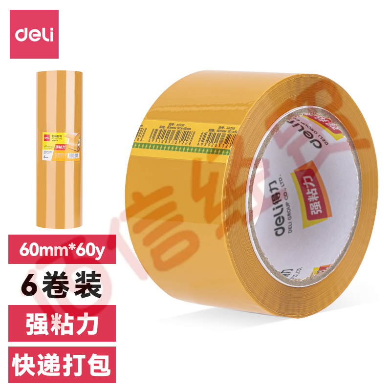得力(deli)米黄色封箱胶带打包胶带 大卷胶带快递打警示打包 60mm*60y*50um(米黄色)(6卷/筒)30358 自营