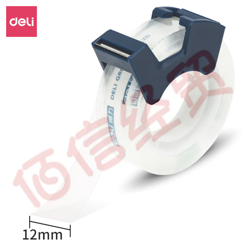 得力(deli) 易撕透明高粘文具胶带/小胶带 12mm*25Y单卷 带简易胶带切割器套装 办公用品 30123 自营